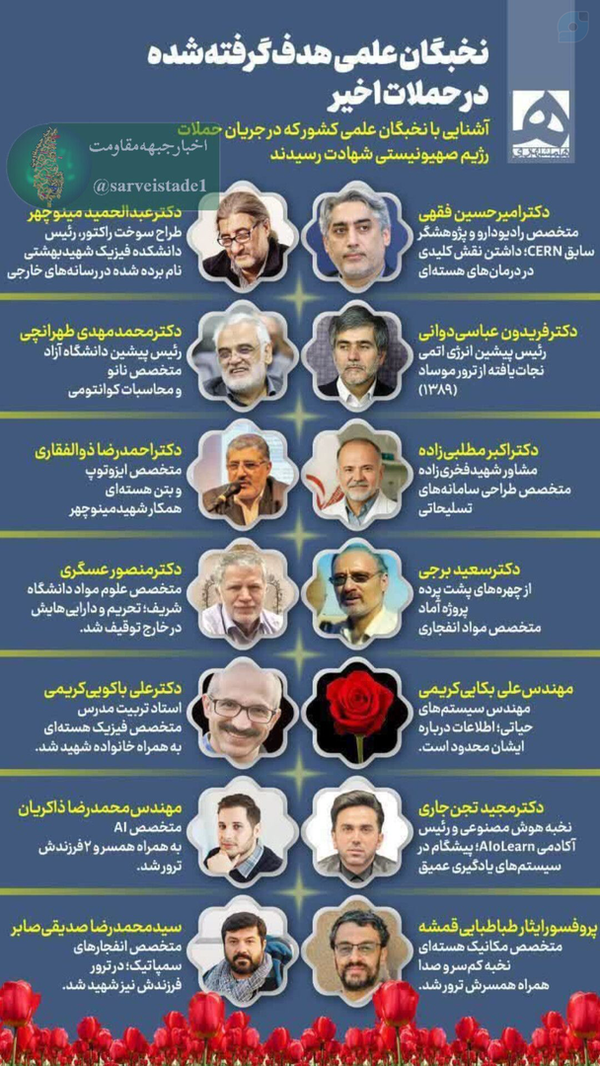 نخبگان ایرانی که در حملات رژیم صهیونیستی در راه وطن به شهادت رسیدند