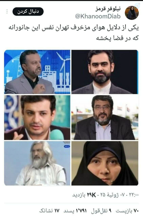 آرام رستمی@aramrostami • 9 July 2025بلندگوی اجارهای دشمن !نفس مسمومت، هوای این کشور رو غبارآلود کرده، نه فقط با کلماتت، که با خیانتی که ازش بوی نوکری بلند میشه.مردم اما بیدارن... و تاریخ، مزدورها رو خوب یادش میمونه.#دارستانی_تنها_نیست #من_هم_دارستانی_هستم