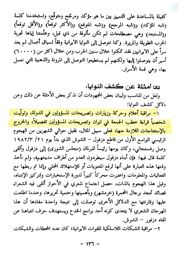 چگونه به دشمن کمک نَکنیم؟همه ما باید در اظهارات خود محتاط باشیم و #حفاظت_اطلاعات را رعایت کنیم.سرلشکر وفیق السامرایی در کتاب "حطام البوابة الشرقیة" #شیوههای_عجیب از جمعآوری اطلاعات در جنگ ایران را مینویسد که اولین آن این است:"یکی از کارهای ما شنیدن #خطبههای_نماز_جمعه و