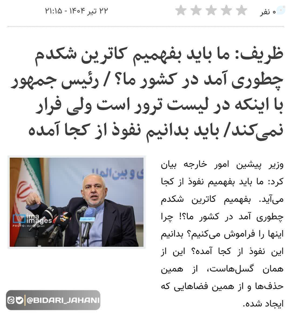 حالا که همه دنبالش بودن تا بیادگند که زده جواب گو باشهخیلی پررروپیداش شده ملت ودنبال نخودسیاه میفرسته.. ها راستی چپ وراستتون همه جاسوس و....ند از هر جنس بنجولشو بخواهی دم دسته تونه توئیتری حالا جمعش کنیه توئیت بزنراستی خواب موندی جنگ شدا؛ جنگی که رئیس جمهورش هم گماشتت بود منتظریم