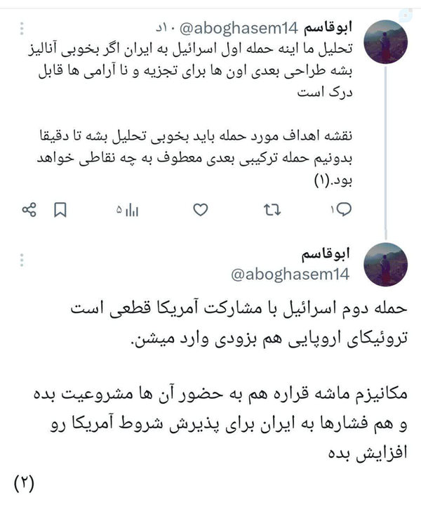 ایندفعه بحث حمله سنگین ترکیبی زمینی و دریایی و هوایی با استفاده از نیروهای نیابتی و مجموعه کشورهای خلیج و اعضای ناتو برای تجزیه ایران است تهدیدها و دادن زمان تقریبی حمله برای بازسازی نیروها و تجهیز قوا و فریب دولت نفاق است بعد عده ای خائن بدنبال تغییر پارادیم نظام و تغییر قانون اساسی هستند