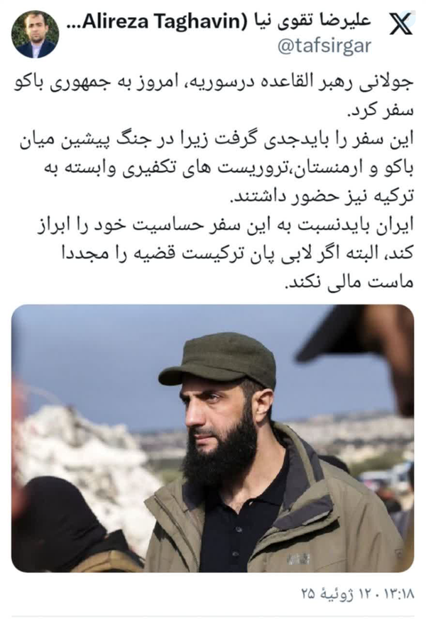 مراقب سفر جولانی به باکو باشیم